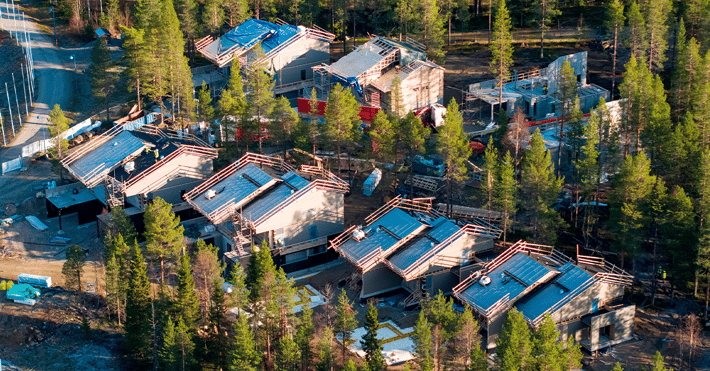 LapWall toimitti Levin Gondolitien vapaa-ajan asuntoihin puiset seinä- ja kattoelementit. Vapaa-ajan asuntojen korkeatasoinen arkkitehtuuri ja luonnonläheiset materiaalit sulautuvat kauniisti ympäröivään luontoon.