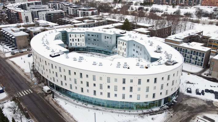 LapWall toimitti julkisivuelementit Turun Tyyssijaan. Rakennuksessa on sekä opiskelija-asuntoja että liiketiloja.