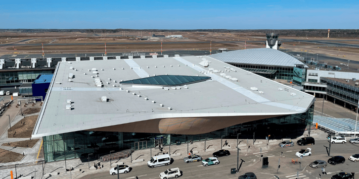 Uudistetussa Helsinki-Vantaan lentoaseman terminaali 2:ssa on monimuotoinen ja veistoksellinen puuelementtikatto. LapWall toteutti terminaaliin vesikaton sekä julkisivuelementtiratkaisuja.