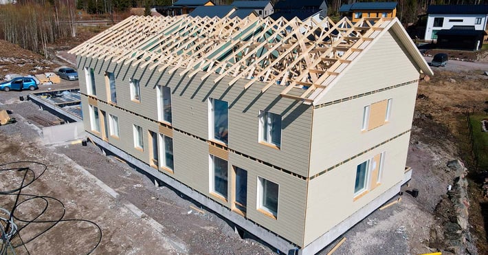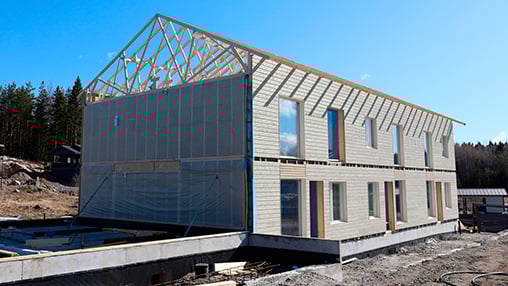 LapWall toimitti ja asensi seinäelementit Porvoon Uljaksentiellä sijaitsevaan kaksikerroksiseen rivitaloon.